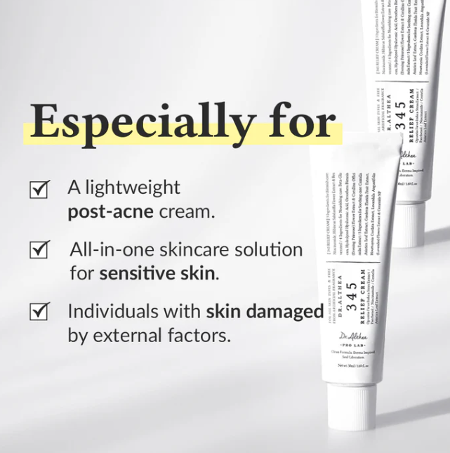 345 Relief Cream is a regenerating ointment gel cream rich in nutrients that skillfully combines ingredients to address blemishes, nourish the skin, and provide soothing care, resulting in a well-rounded skincare solution. This lightweight post-acne cream effectively tends to acne aftermath without a heavy feel. Its multi-layered cream structure offers a through and lasting skincare by catering to various skin needs, ensuring continuous hydration and nourishment.