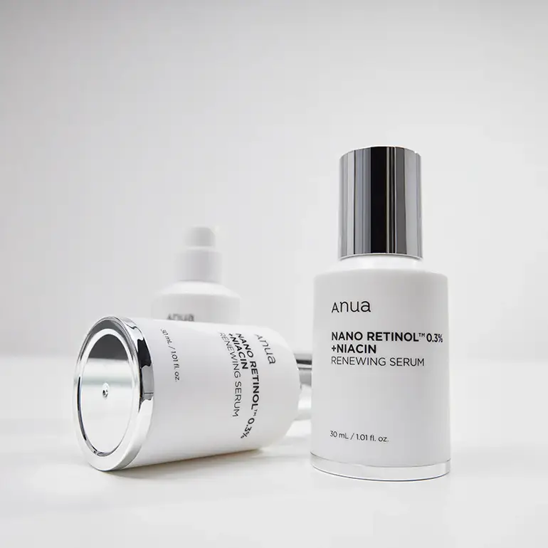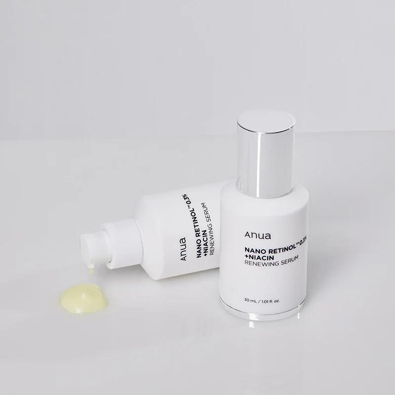 Anua Nano Retinol 0.3% + Niacin Renewing Serum is a powerful brightening serum infused with Retinol and Niacinamide to smooth fine lines and improve hyperpigmentation while restoring skin elasticity. It is enriched with 8 types of peptides to enhance the moisturizing effect and further reduce wrinkles, while minimizing pores and firming sagging skin. This serum is blended with a moisturizing and soothing formula, with ingredients such as Tea Tree Leaf Oil, Carapa Guianensis Seed Oil and Ceramide. Skin irritation test completed, suitable for sensitive skin.