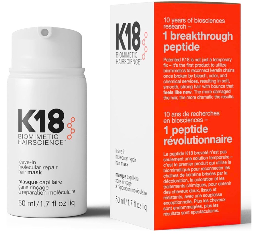 A leave-in treatment mask that works on the molecular level to reverse hair damage in just 4 minutes. The K18PEPTIDE™ is clinically proven to repair damage from bleach + color, chemical services and heat* – with immediate and lasting results to restore strength, softness, smoothness and bounce to hair.